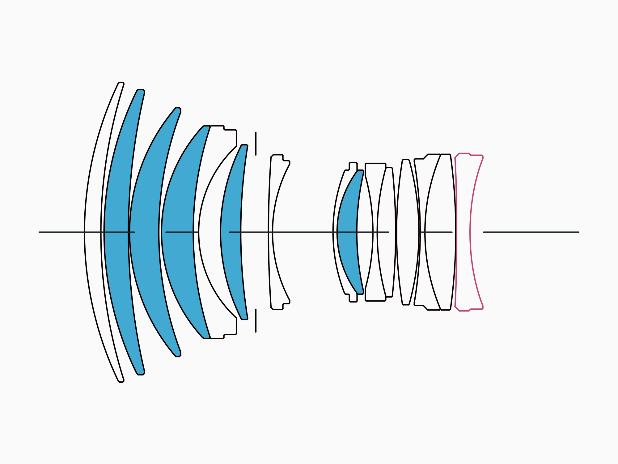 Taking advantage of the short flange focal distance of mirrorless system, this lens employs a unique lens construction that other 85mm lenses do not. And, it is entirely different from the one used for the 85mm F1.4 DG HSM | Art, which is designed primarily for DSLR cameras. As for extra-low dispersion lens, it uses five SLD glasses. Improving image quality and compactization were made possible by optically correcting axial color aberration which can only be corrected optically, while utilizing in-camera correction to deal with vignetting and distortion. In the following section, we will compare this lens with competitors in terms of chromatic aberration, sagittal coma flare, bokeh size, as well as bokeh balls.