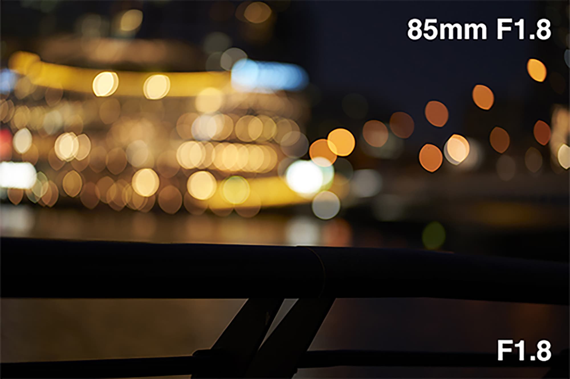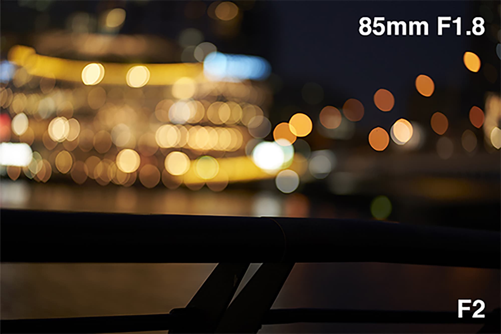 Circularity of the bokeh balls is also an essential trait for a 85mm lens. The area with true circles is much wider than that of the F1.8 counterpart and this means that beautiful bokeh balls are available throughout the frame maintaining shallow depth of field. Generally speaking, circularity of bokeh balls increases by stopping down. However, it leads to small bokeh size and weak 3-dimensional effect. By reducing the dilemma, this lens provides greater freedom in expression.