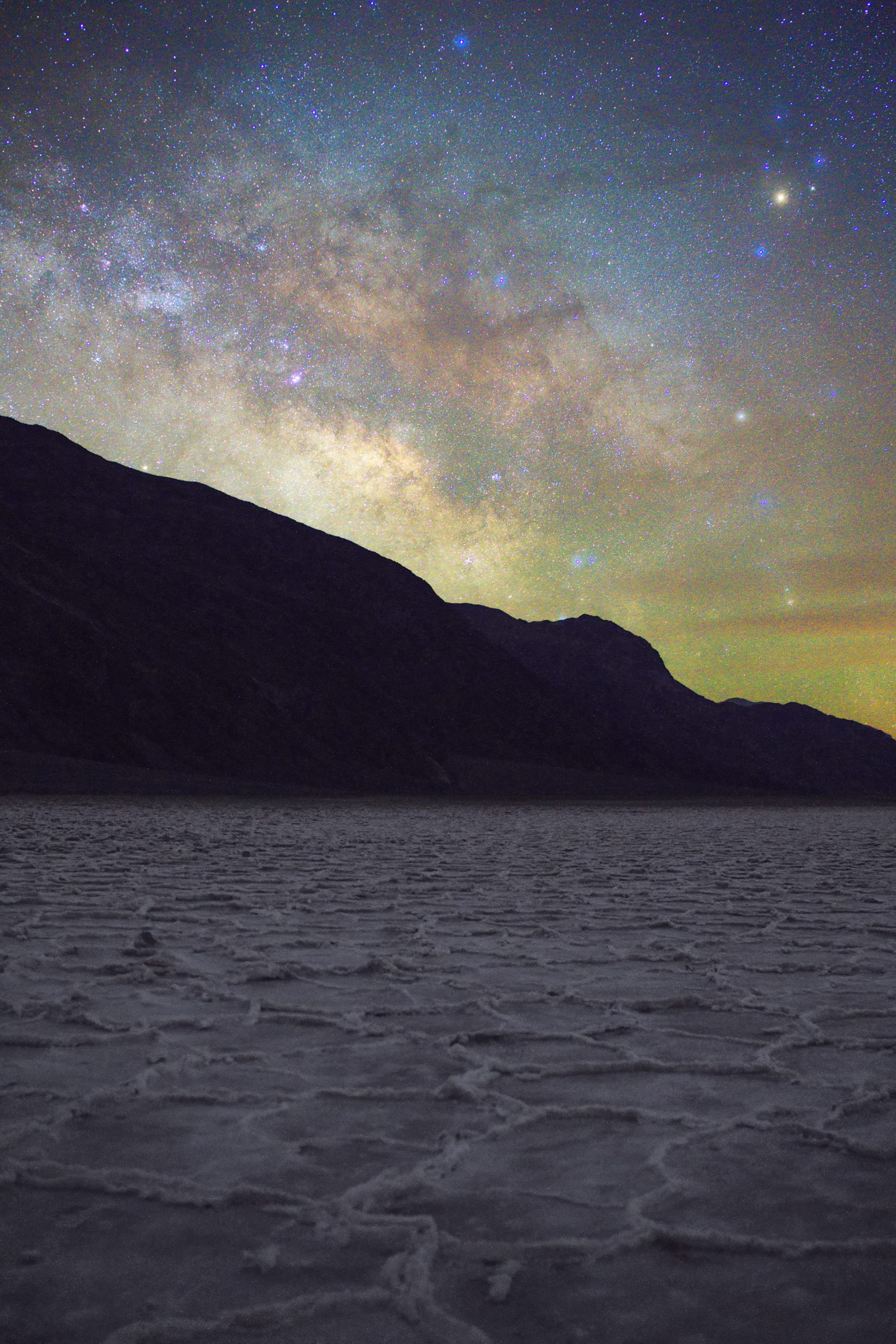 While I was excited about the images from the first part of my evening, I was even more excited for my last two locations. I planned the night so I would arrive at the famous salt flats of Badwater Basin just as the Milky Way would be rising above the horizon. This would be the perfect location to capture the stars using two different techniques. I planned on using a star tracker, a device that allows for longer exposures while keeping the stars sharp by very slowly rotating, and also taking images to stack in post processing to reduce noise.