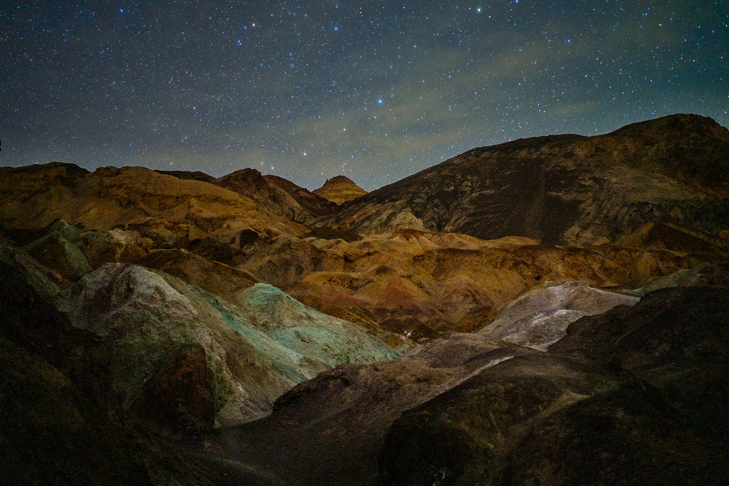After leaving the sand dunes, I drove across the park making my way to the Artists Palette. This area is known for its vibrant and unique colors caused by oxidation of metals in the rock. Without any ambient light, I shot a 60 second exposure for the foreground lit purely by the stars to pick up some of the unique colors in the rock. After the minute long exposure, I took a 10 second exposure for the sky and combined the two exposures in post processing.