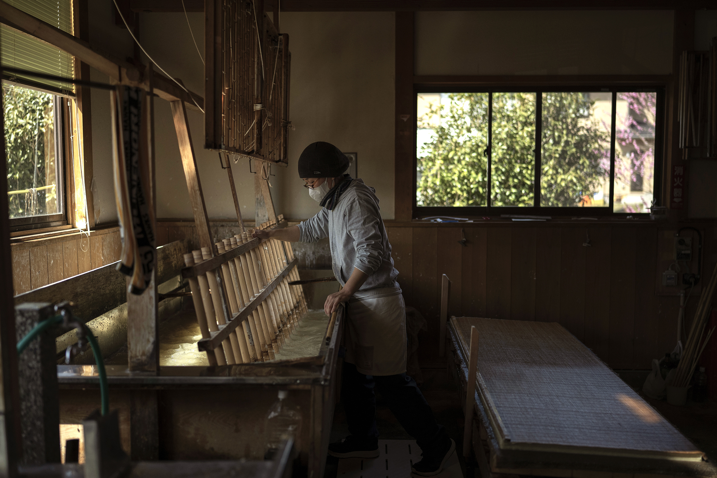 In a small valley, in the prefecture of Saitama, north of Tokyo, the clear waters of the Tsuki river cross a village and the sounds of the sukisu (sieve) swimming inside the sukibune (tub) can be heard as a "washi" master works. Washi is a handmade paper and the skills needed to make it are part of the Unesco Intangible Cultural Heritage list.