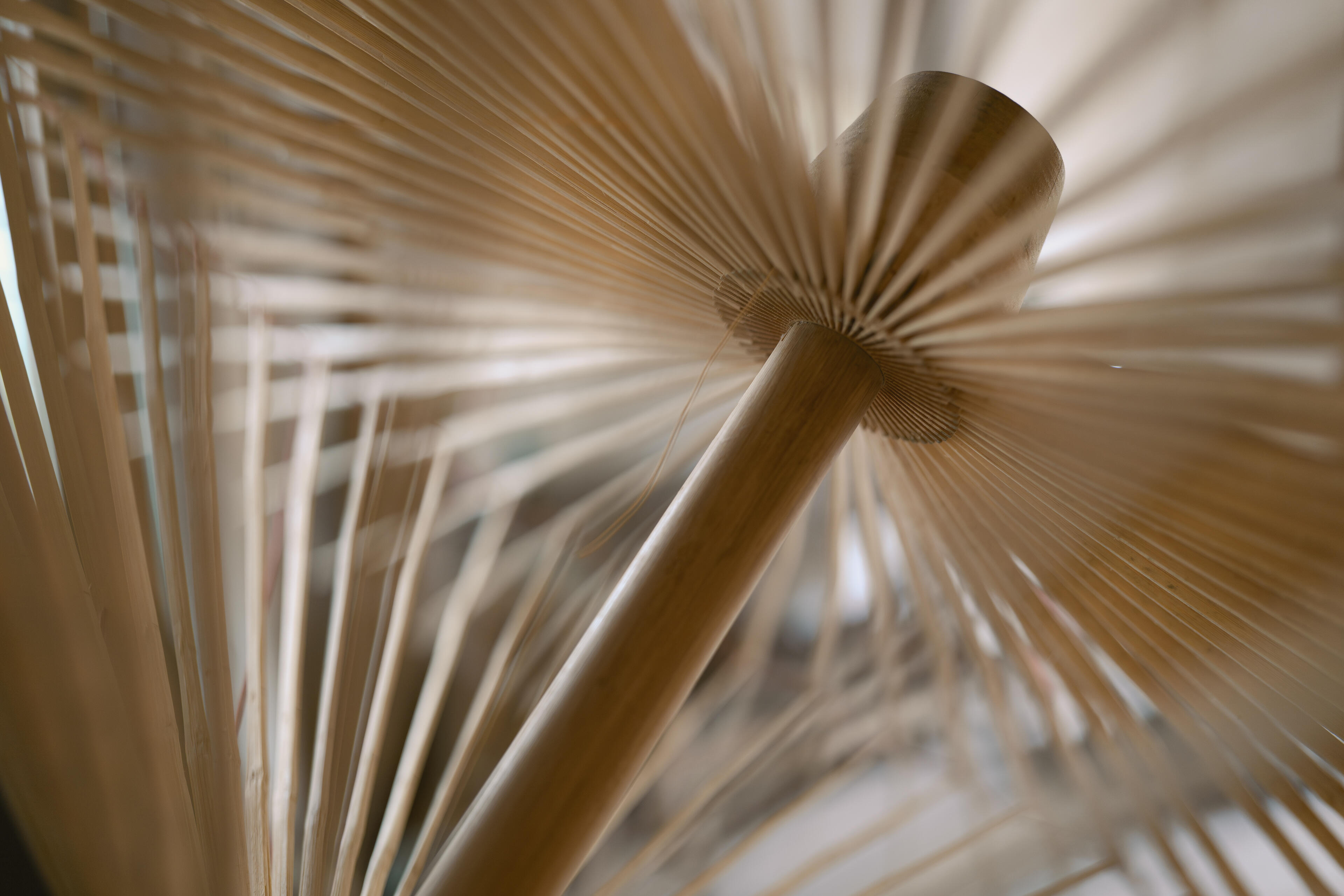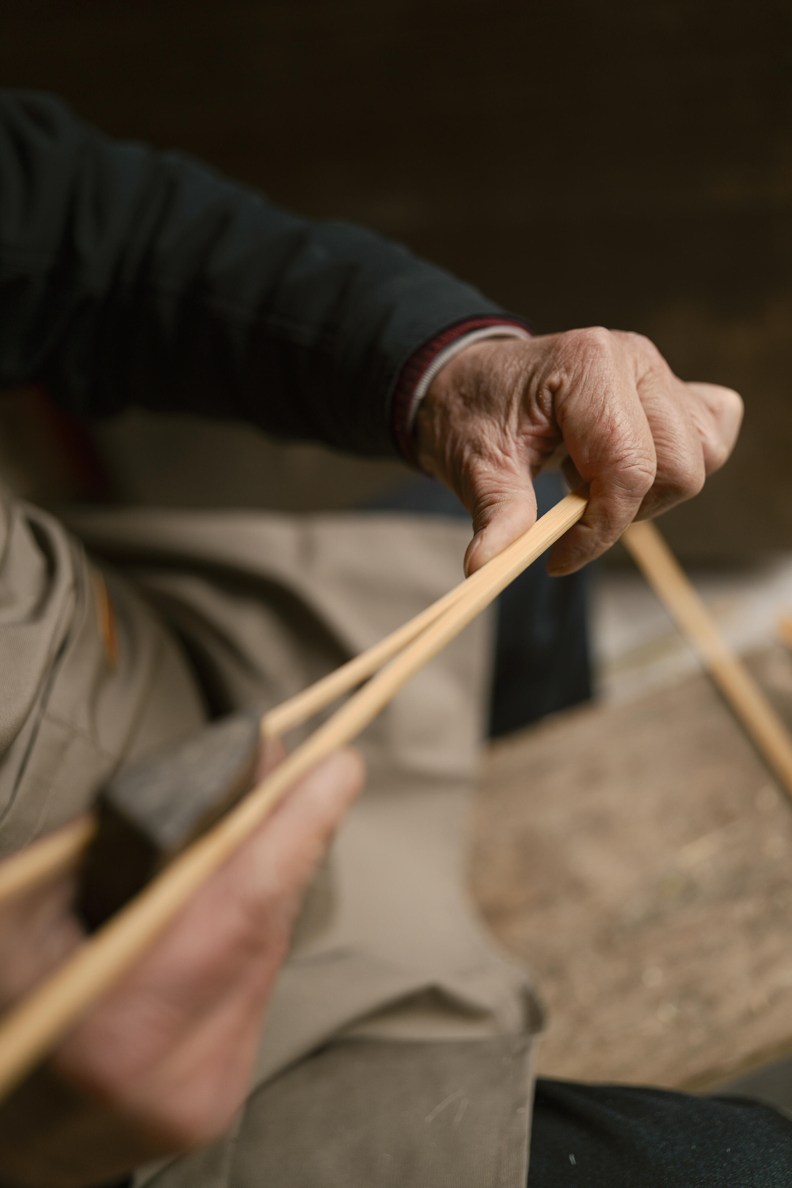 Because the working environment on site was relatively cluttered, I relied almost exclusively on shooting wide open. This allowed me to isolate precise movements of the artisans’ fingertips or highlight the intricate structure of the umbrella ribs. The plane of focus locks accurately onto the subject, while the out-of-focus areas are rendered softly and smoothly, creating a clear yet gentle contrast between sharpness and blur with strong depth and layering.