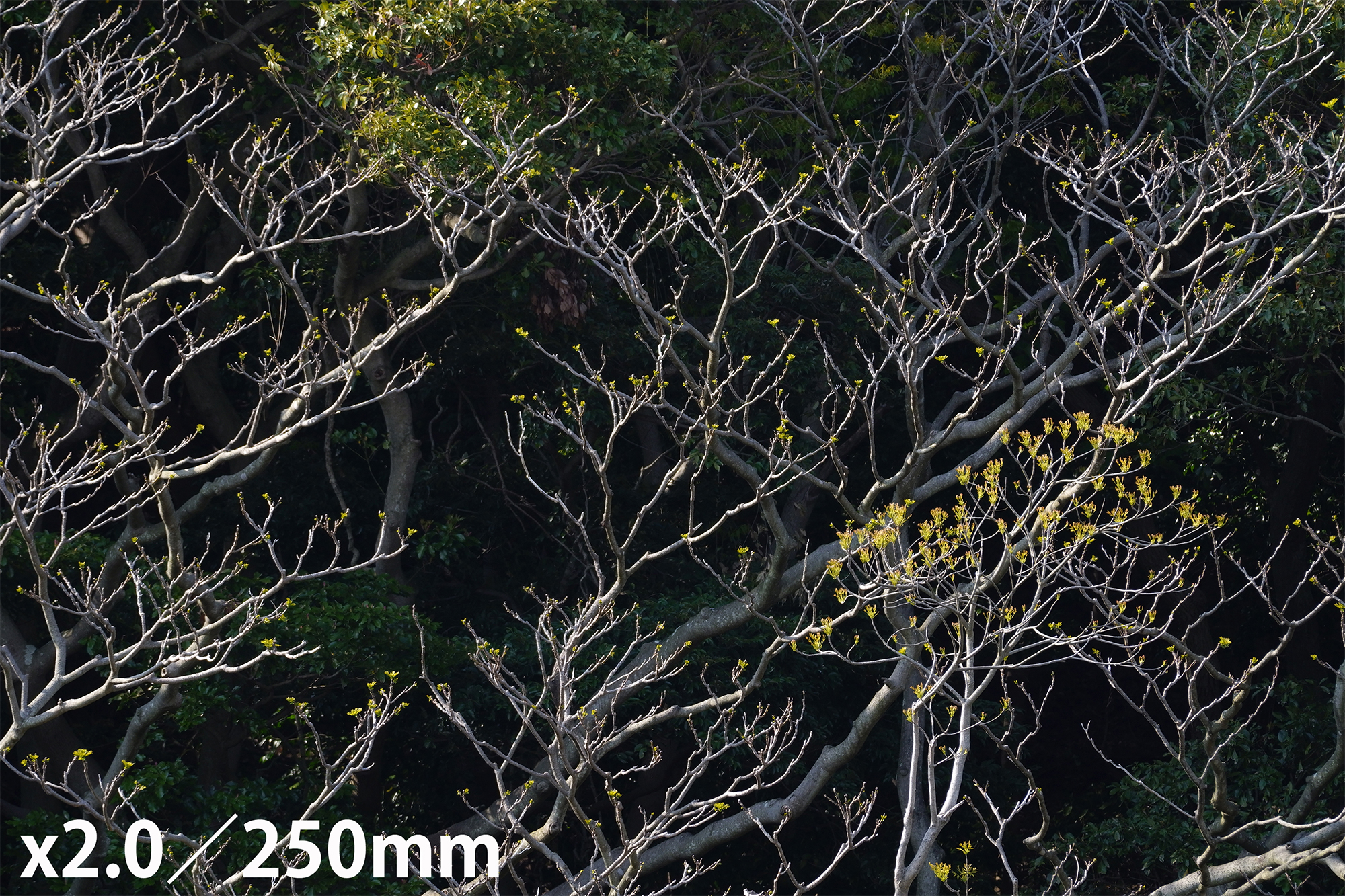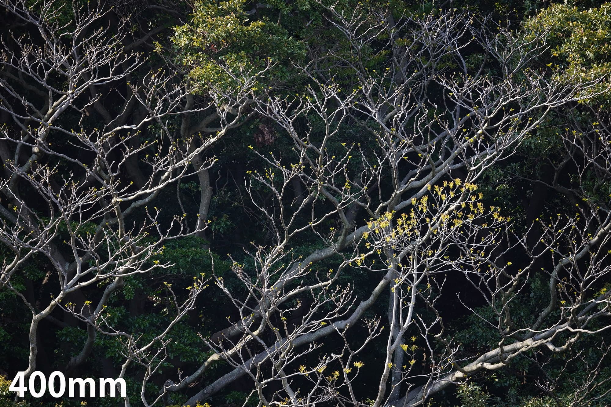 The samples below are shot from the same position at 100mm, 250mm, and 400mm. They were shot with no teleconverter, with TC-1411(1.4X), and with TC-2011(2.0X). Shooting range is surprisingly broad and the image quality is stable throughout the zoom range.