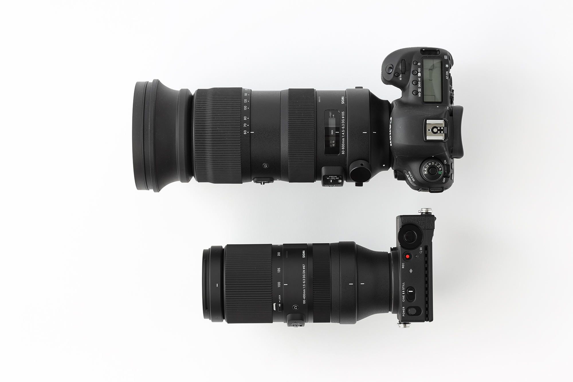 With the SIGMA fp, the 100-400mm F5-6.3 DG DN OS | Contemporary shows how compact a telephoto system can be. The lens for comparison is the 60-600mm F4.5-6.3 DG OS HSM | Sports (released in October 2018).