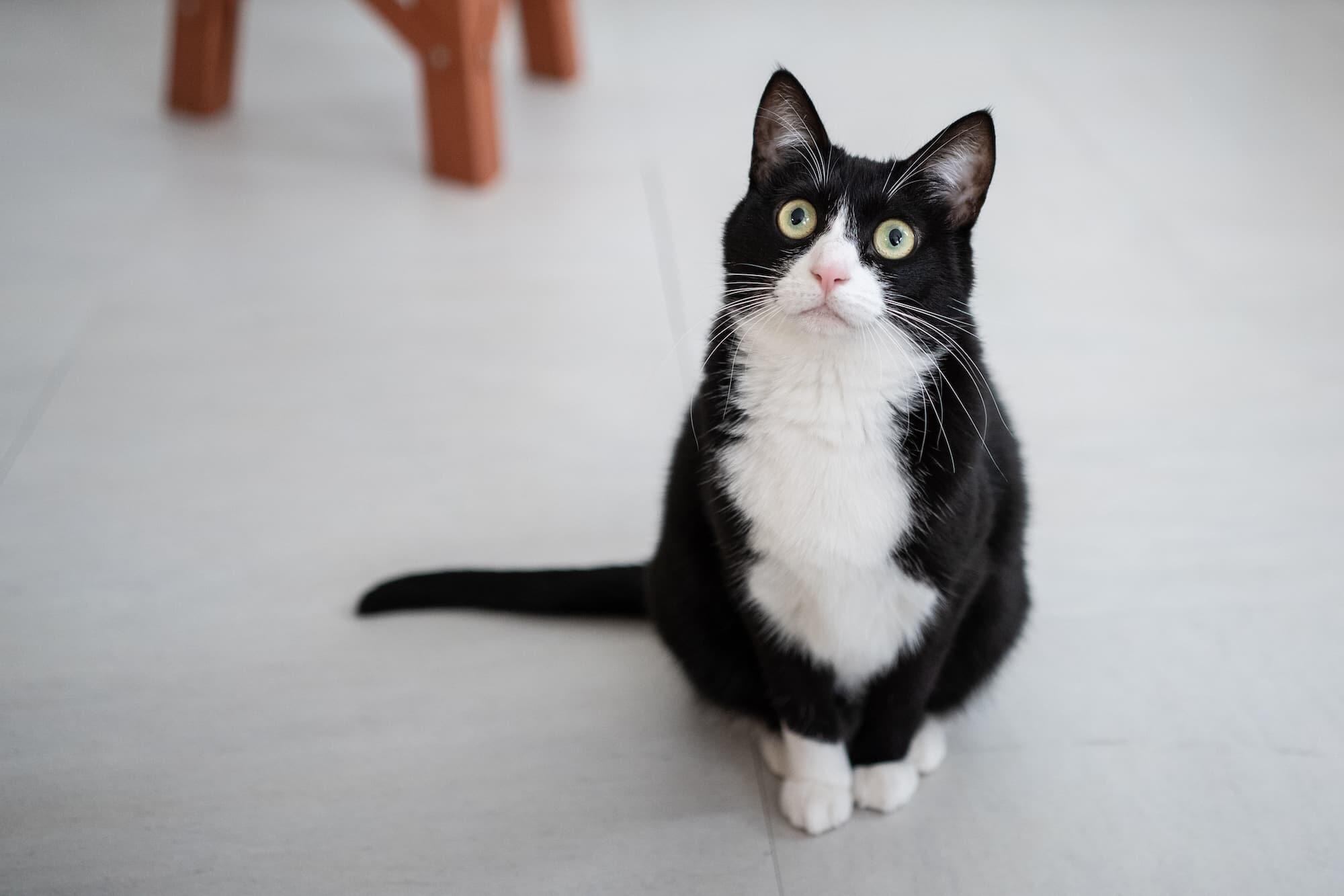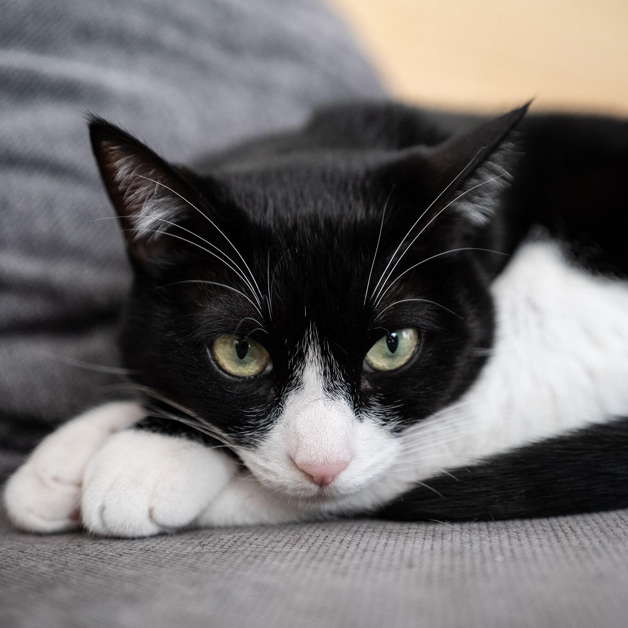 I took a couple of shots of a piebald cat, which is a difficult subject to photograph in my experience. The AF was very fast, and the cat’s black and white hair is captured with detail and depth.