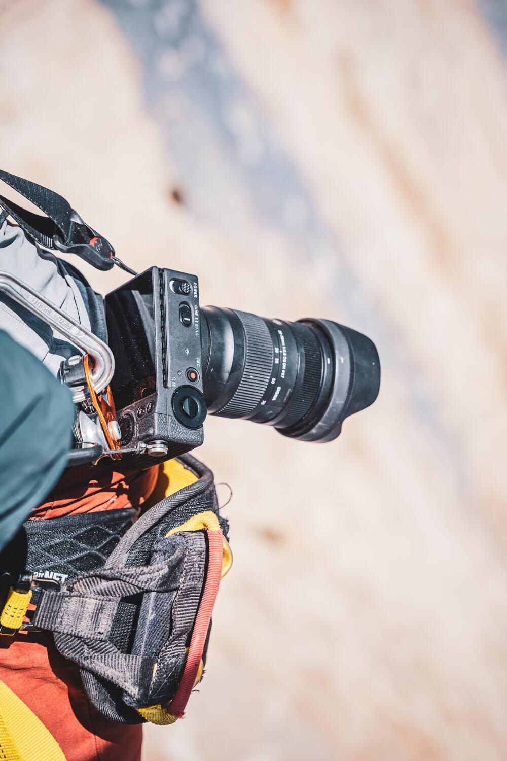 With the 16-28mm F2.8 DG DN | Contemporary, I have a companion ready for any adventure. This combo is super compact, light and balanced, and once I put it around my neck I hardly feel it anymore. And that's a huge advantage when you're rope climbing.