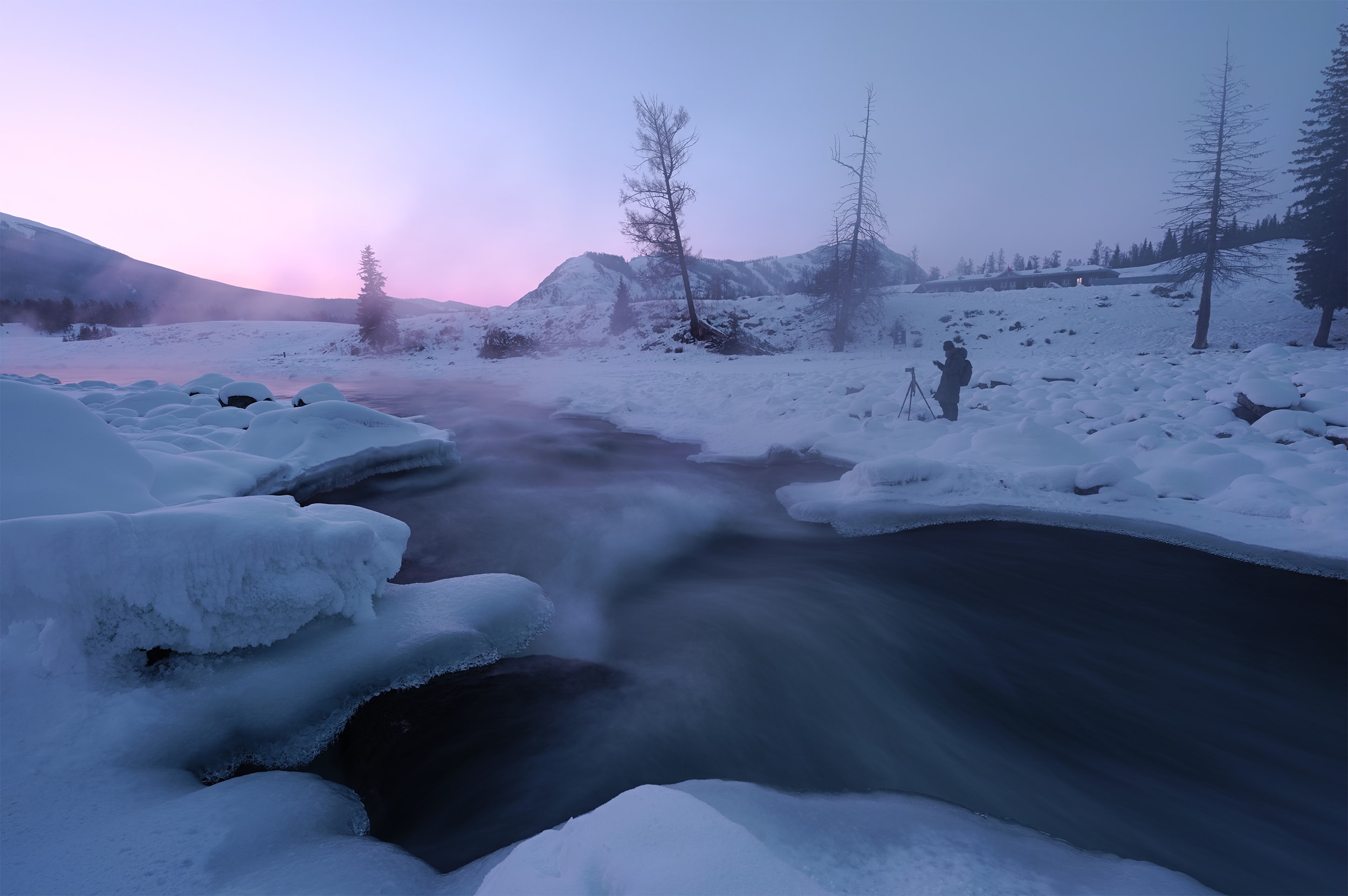 These photos are taken in North Xinjiang, China. Distinguished from the common impression of colorful Kanas Lake and Ili Kazakh Autonomous Prefecture, here it is covered with snow throughout the winter and the temperature is normally down to -40 degree. Because of this tough environment, photographers rarely visit here. Thanks to this extreme climate and spectacular geomorphologic landscape, it allows me to create refreshing photos. This perfectly matches with my philosophy on photography--pursuing sublime beauty of the world.