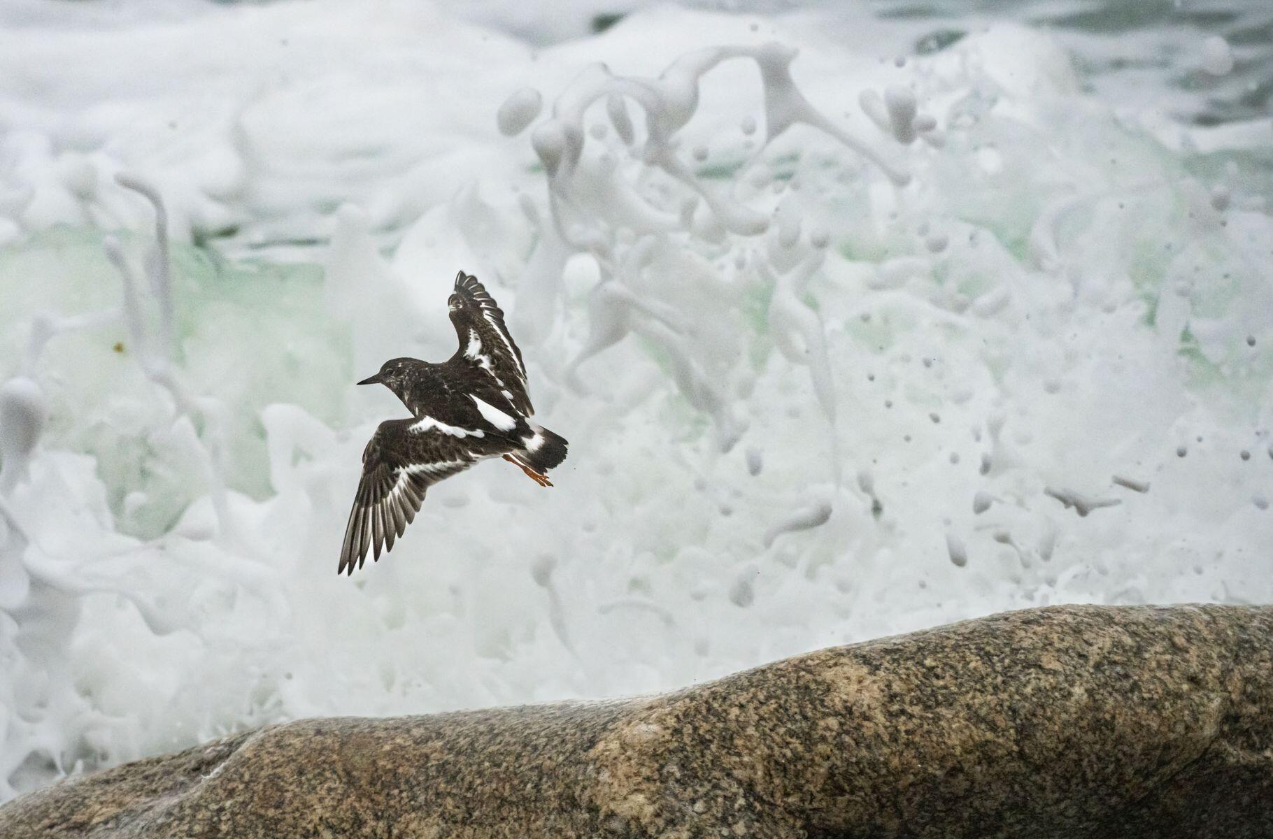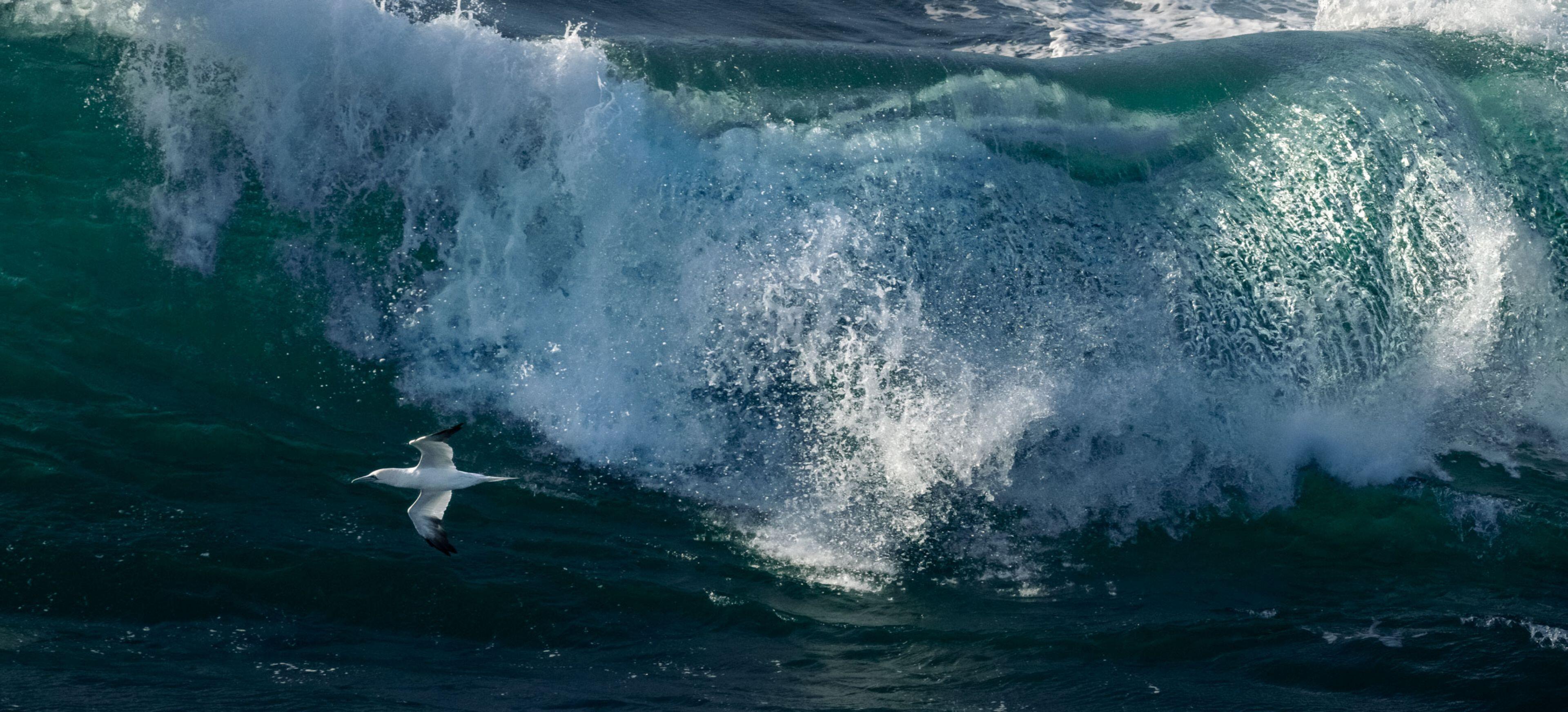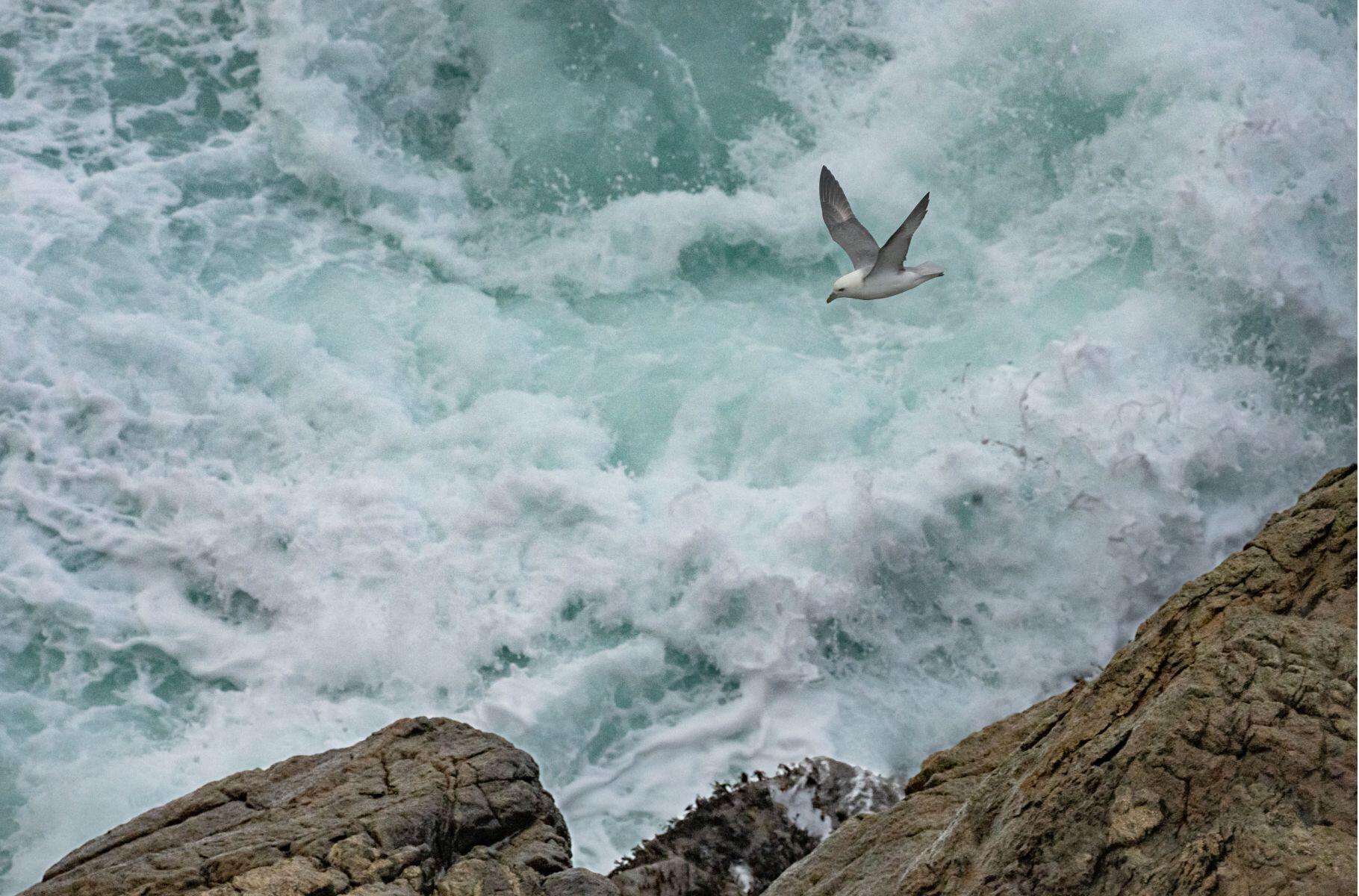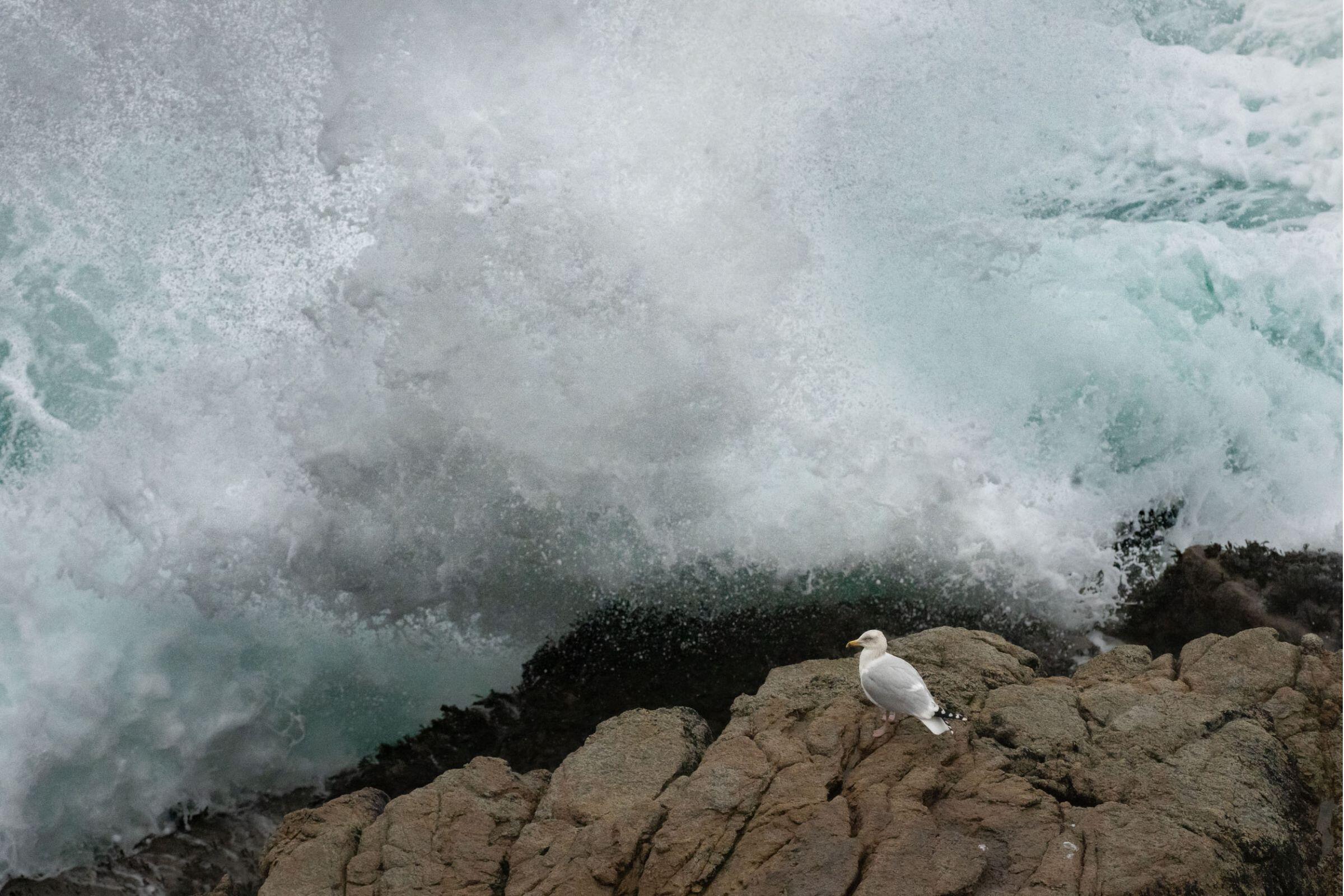 For this series of images, which I began more than ten years ago, two very ephemeral movements must come together: the flight of a bird with an uncertain trajectory and the explosion of a wave. Perseverance is essential for this type of image. Several times I have spent entire days in the storm waiting for a bird to pass by at the right moment and photographed nothing. This can be frustrating, but I think it's necessary for a photographer to push back their limits.