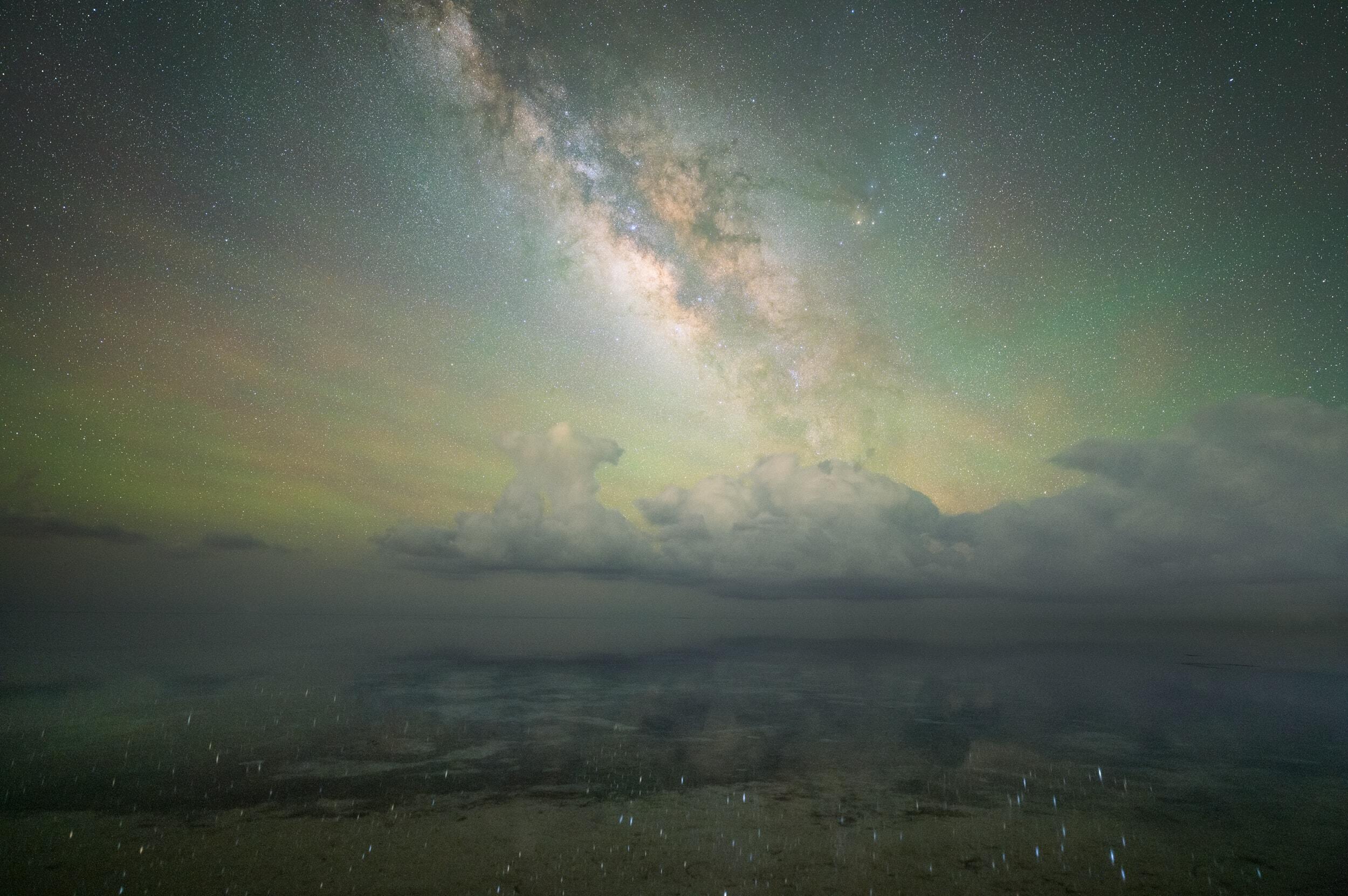 The rest of the night continued similarly. Arriving at a new location, excitedly checking the back of the camera, and immediately thinking about the next shot. One of my favorite moments of the night came after most of the clouds passed and the wind died down completely. The shallow water had virtually turned into a mirror and was reflecting the night sky. I used a smaller tripod to place the camera just above the water to capture what felt like an incredibly unique scene.