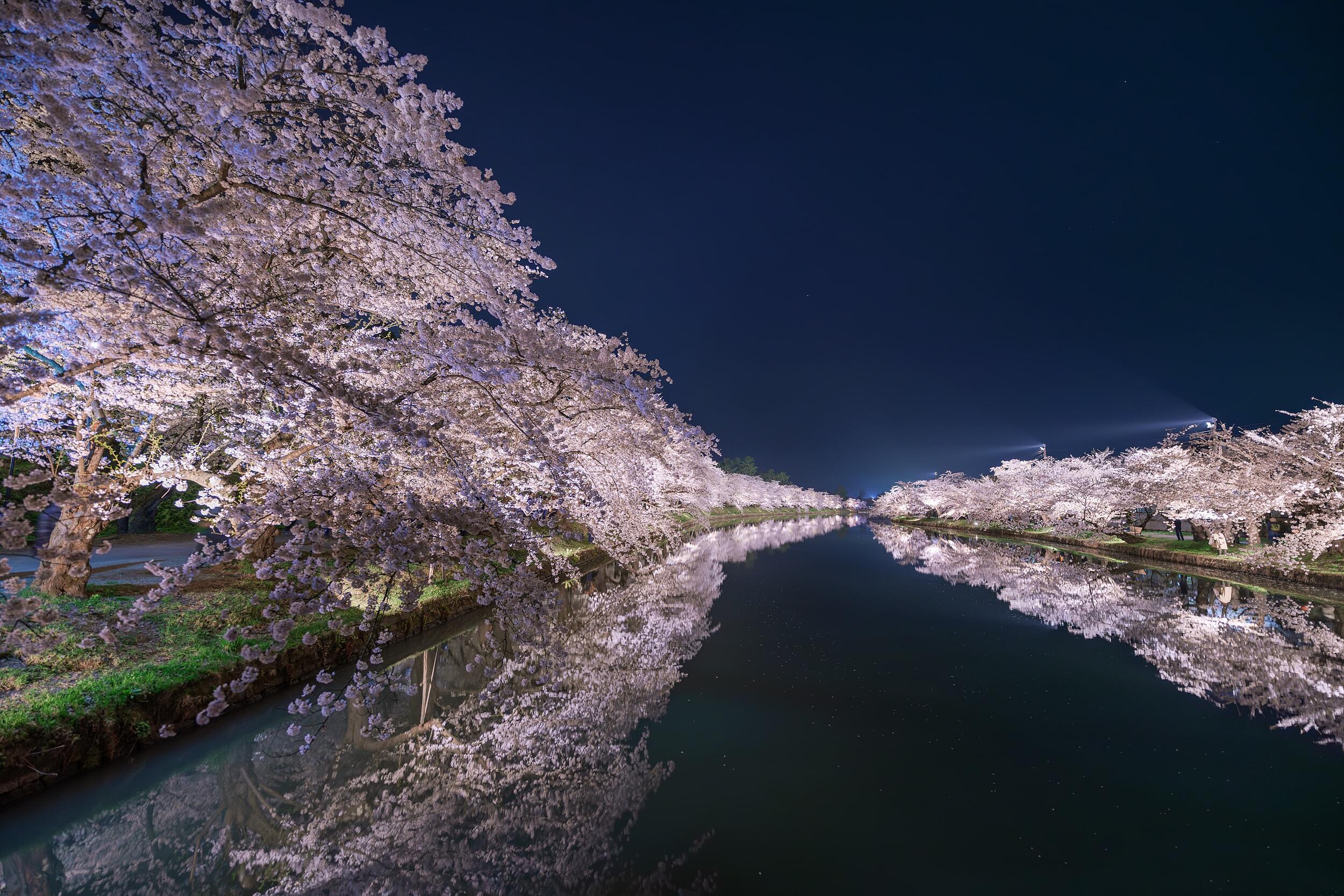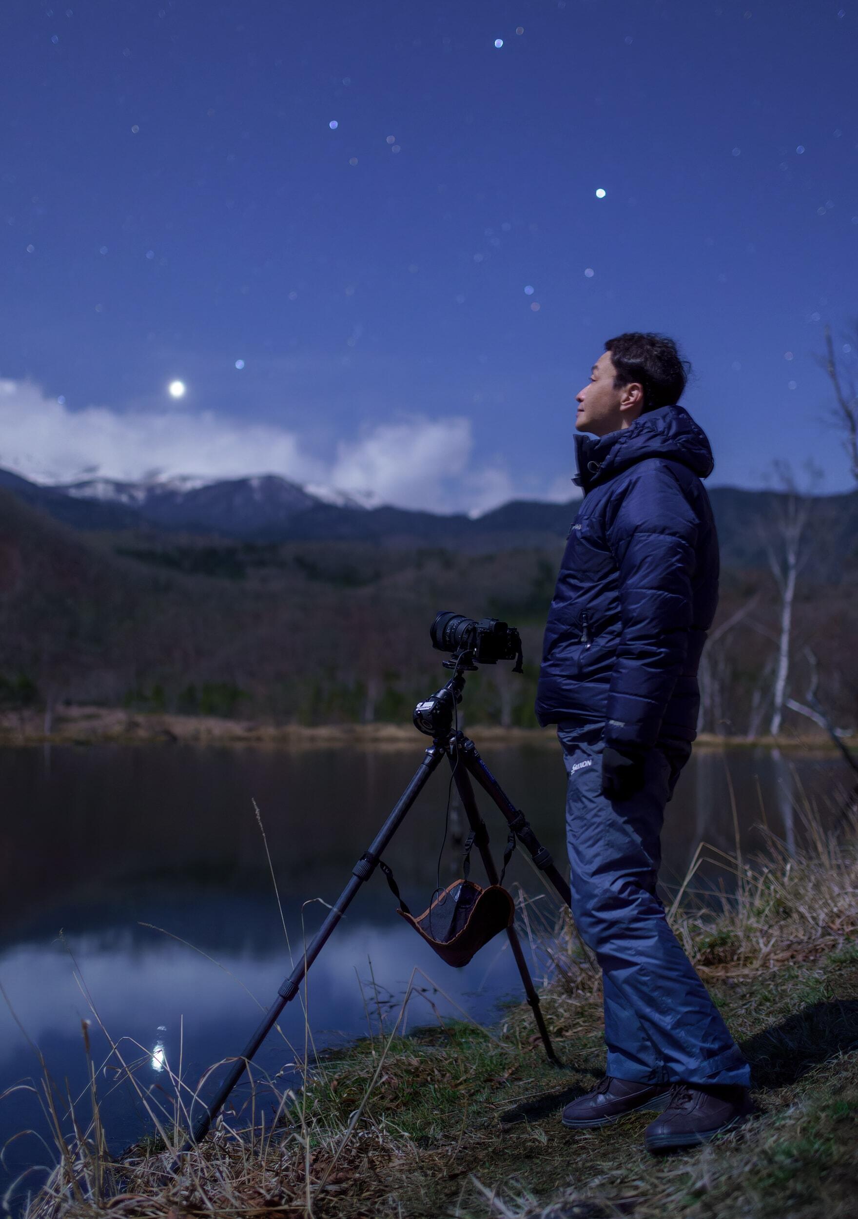 We live in a tremendously large world. This is especially apparent at night. The moon and stars shine in the night sky, but the distance to the moon is only a second or so at the speed of light, and some light from the stars takes tens, hundreds or even thousands of years to reach us. On the other hand, from the nearby countryside and city lights, one can sense the warmth of life and culture of human beings, who were miraculously born in the universe. These are all connected events, and I love such scenes.
