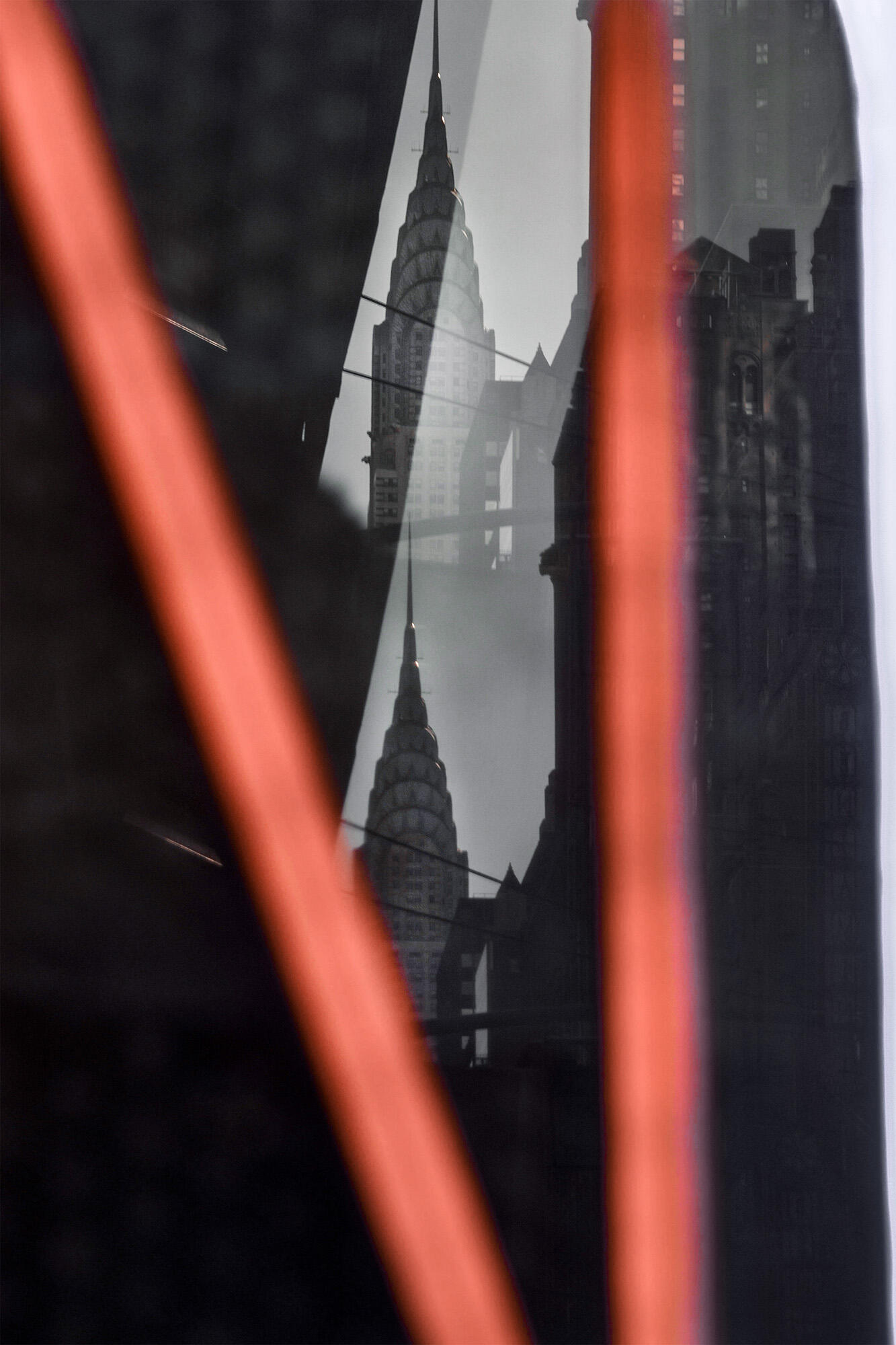 Their images exhibit an anamorphic, collage-like quality, often achieved by capturing objects distorted in reflective surfaces or by incorporating their own shadows to obscure or warp a scene. They are drawn to the visual density of big cities in their work and have recently published two books—one a personal project focused on New York, and the other a commission for Louis Vuitton featuring images taken in Seoul.