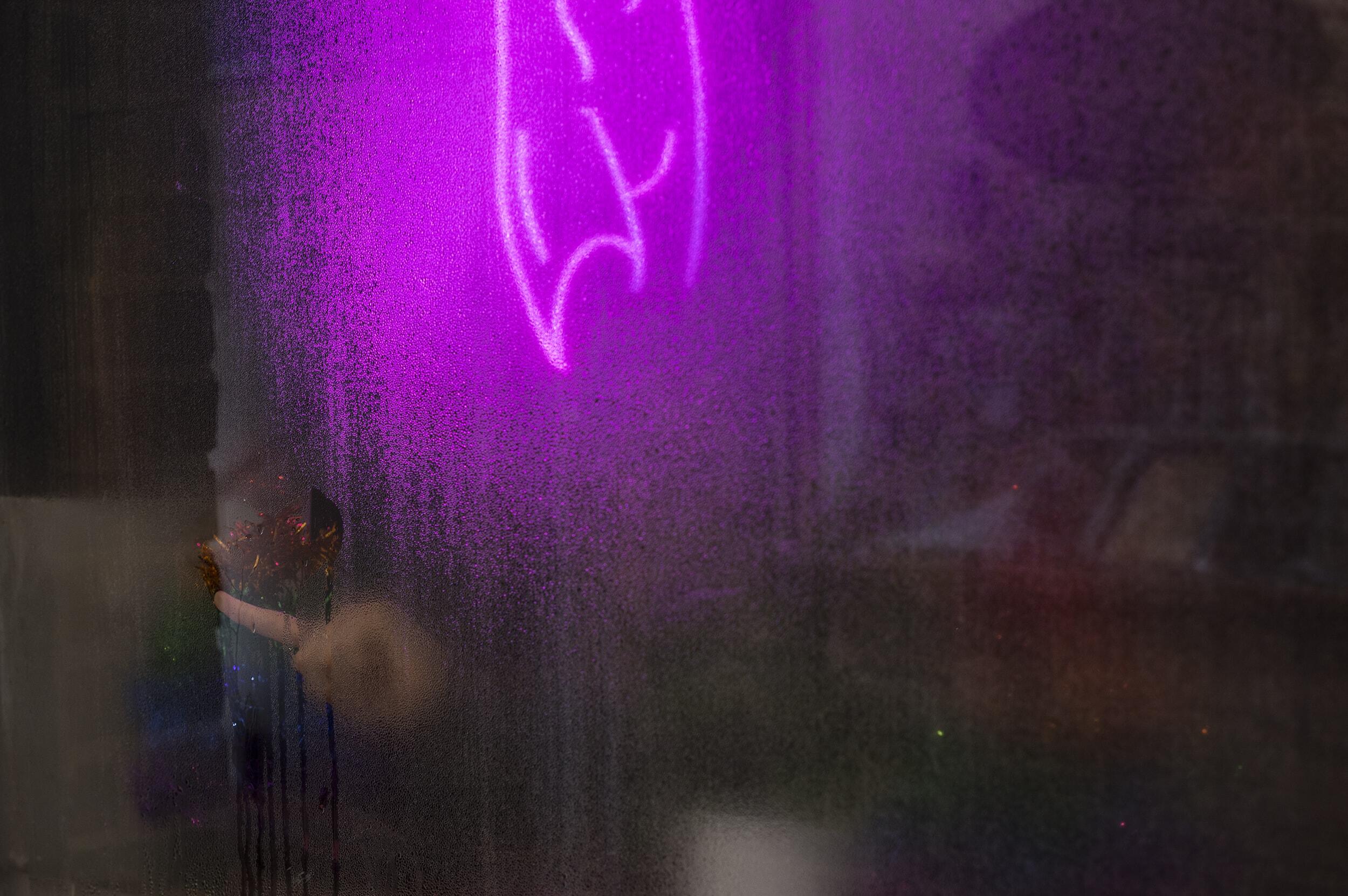 Someone drawing on the condensation of the window. This was a quick reaction 'snapshot'.
