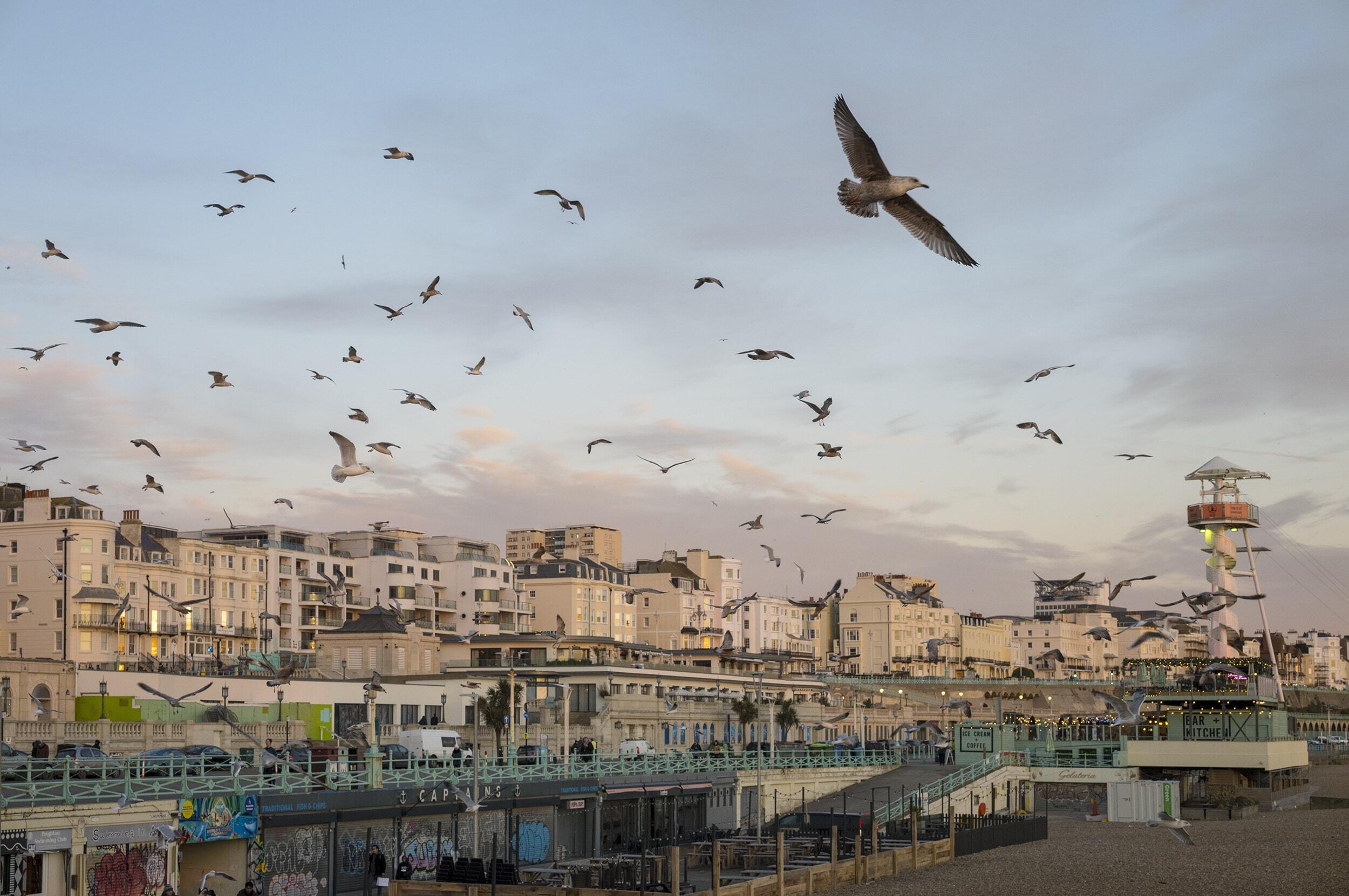 Seagulls flocking in the evening. It's not easy to create an image of flocking birds as there needs to be a point of reference. This was the best and last in a set of 25 images. What I love about the SIGMA 50mm F1.4 DG DN | Art is how it condenses perspective more than wide angle lenses, bringing the whole scene a little closer.