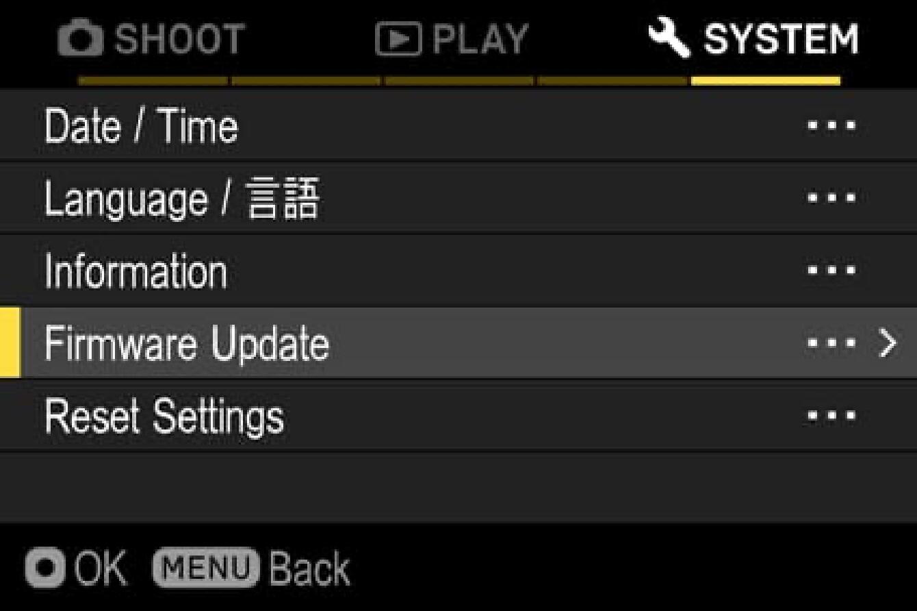 Select “Update Firmware” and select “OK”.