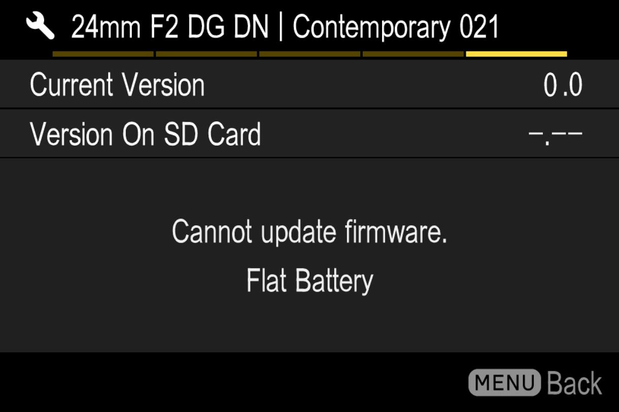 The following procedure is to update the lens firmware via SIGMA fp series camera. For firmware updates of Leica and Panasonic L-Mount cameras, please follow the instruction manual for each camera.