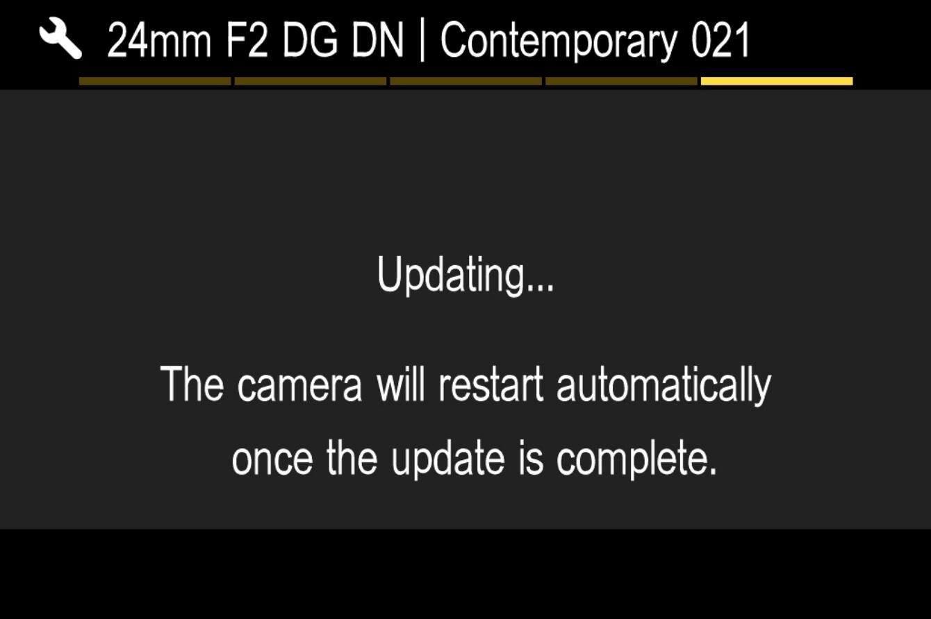 3. After closing it, the message “Updating the lens” will appear on the camera display, and the firmware update of the lens will start.