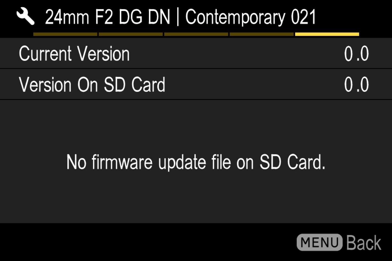 The firmware version that is installed in the lens will show up.