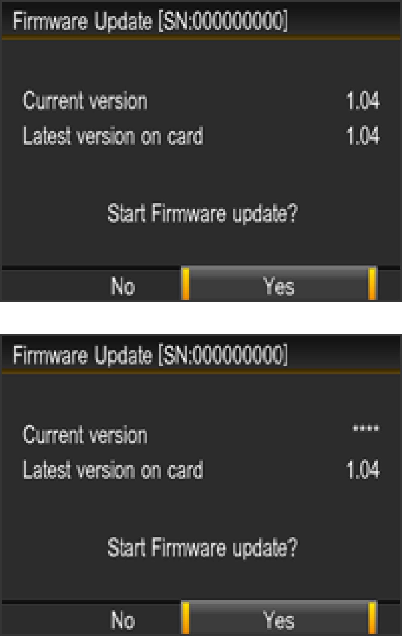 Select “Yes” and press OK button to start the firmware update (usually it takes about 3-5 minutes to update).