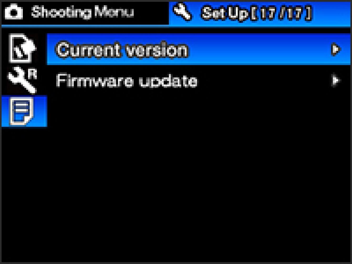 Use the 4-Way Controller to open the sub menu and then select “Current version”.