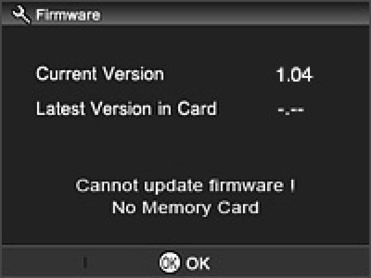 - No Firmware update file on Memory card * The firmware version will be displayed like“-.--”.