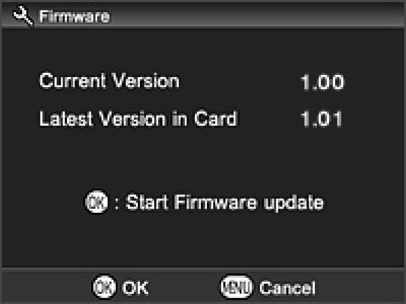 Select “Firmware” from the Camera Settings menu and press the OK button. The Firmware menu will be displayed.
