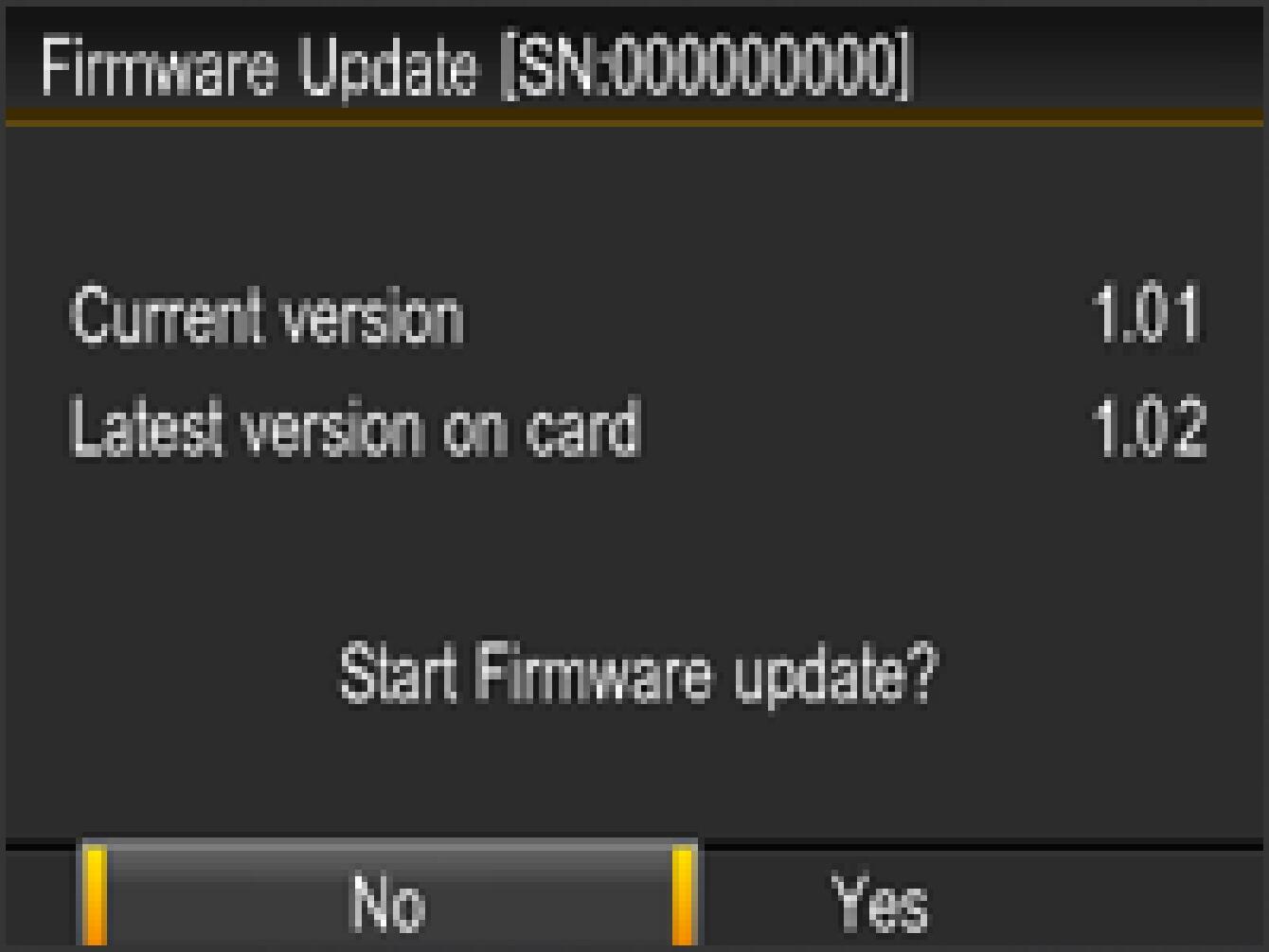“Start Firmware update?” message will be displayed.