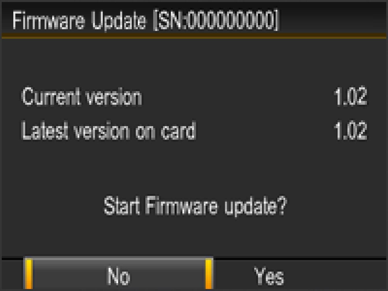 - No Firmware update file on Memory card