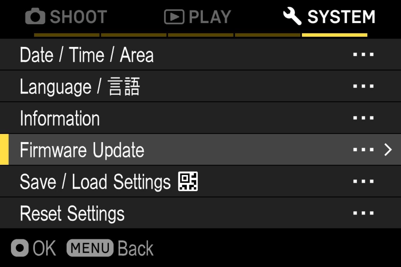 Insert the SD/SDHC/SDXC card with the firmware to the camera and turn on the power.