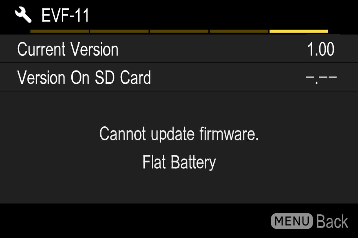 - The ELECTRONIC VIEWFINDER EVF-11 needs to be attached to a camera to update the firmware.