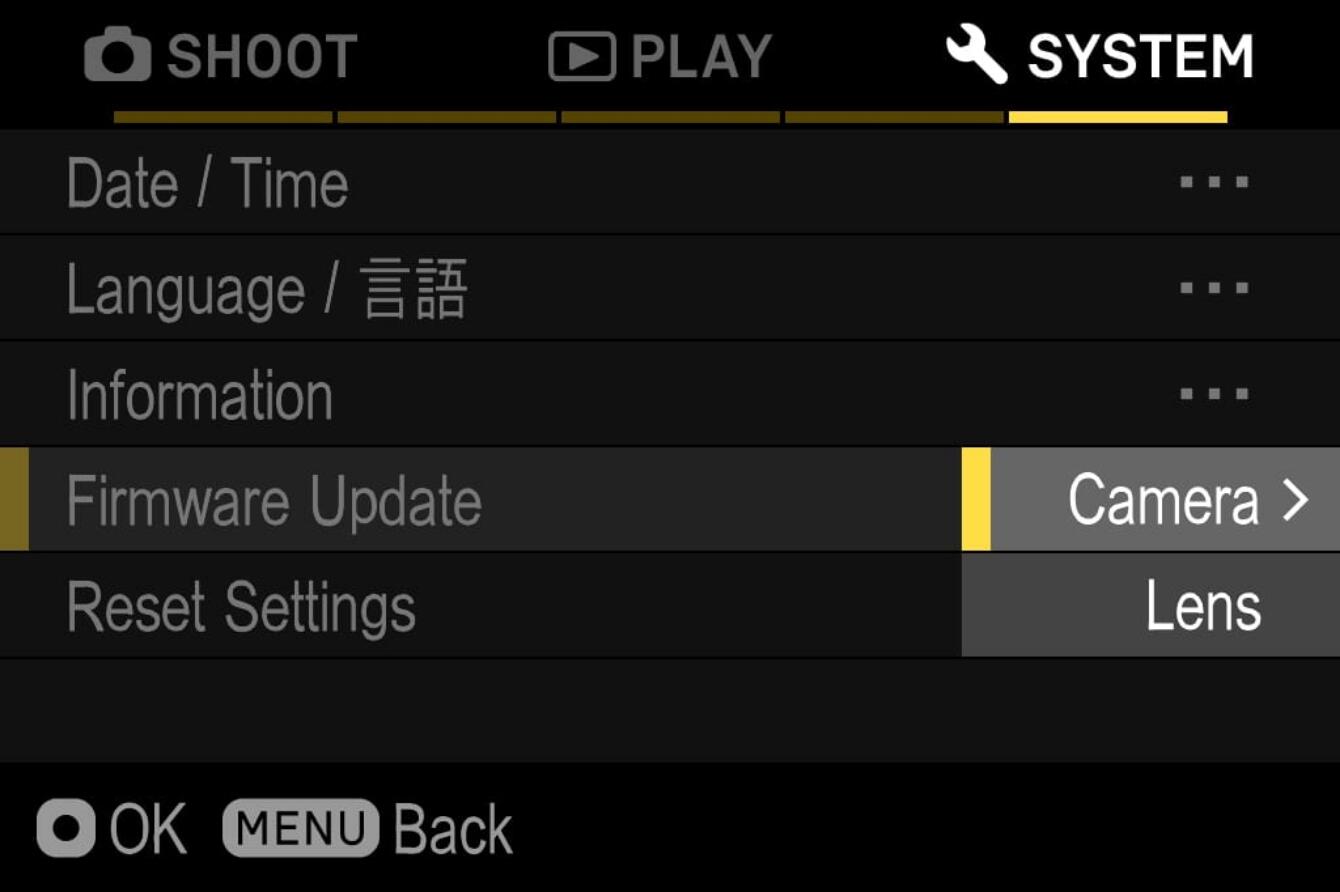 Check the “Information” version in the setup menu and confirm the camera version is updated to Ver. 5.02