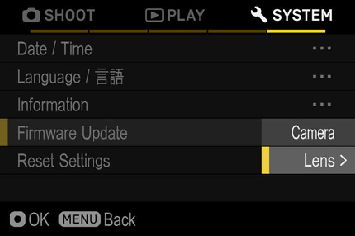 Check the “Information” version in the setup menu and confirm the lens version is updated to Ver. 1.4.