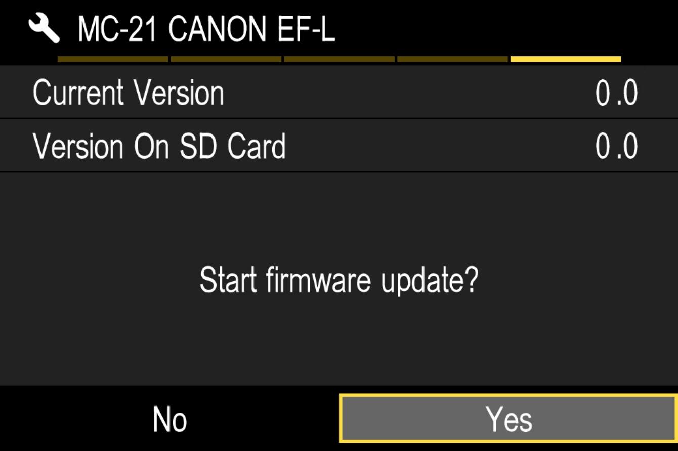 Select “Yes” to start the firmware update. Shortly the update will start.