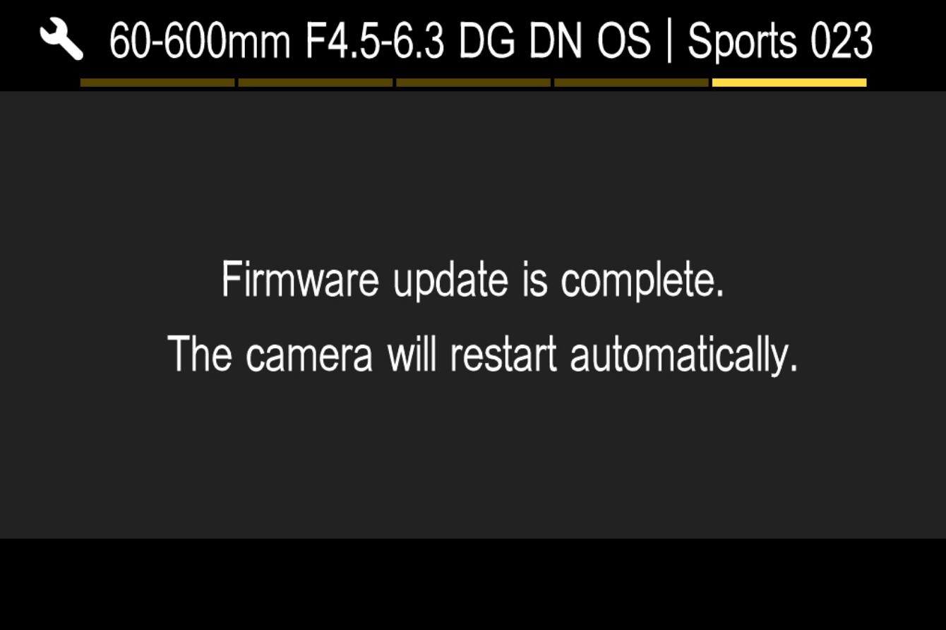 3. After closing it, the message “Updating the lens” will appear on the camera display, and the firmware update of the lens will start.