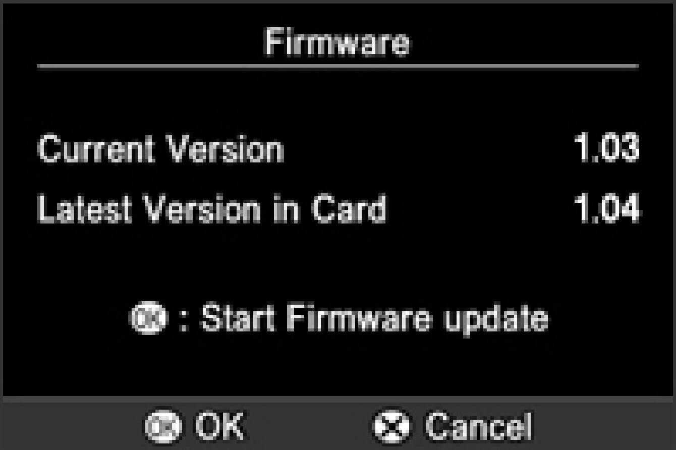 Select “Firmware” from the Set Up menu and select ‘Current Version’ to confirm the firmware has updated to “Ver.1.04”. If “Ver.1.04” is displayed, the update is complete.