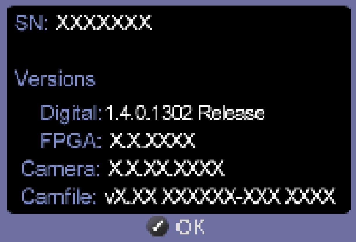 5: Depress the bottom arrow on the 4-Way Controller. This will give you a screen that lists different versions of programs loaded on the camera. If the “Digital:” is 1.4.0.1302 or earlier, you should download this new version and update your camera.